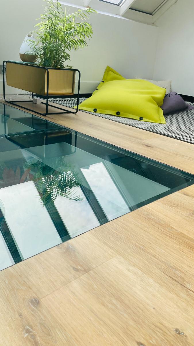 Réalisation d’une mezzanine aux couleurs vitaminées. Elle devient ainsi un lieu vivant, parfait pour se détendre ou travailler dans un cadre à la fois stimulant et élégant, où chaque détail respire la vitalité et la créativité.